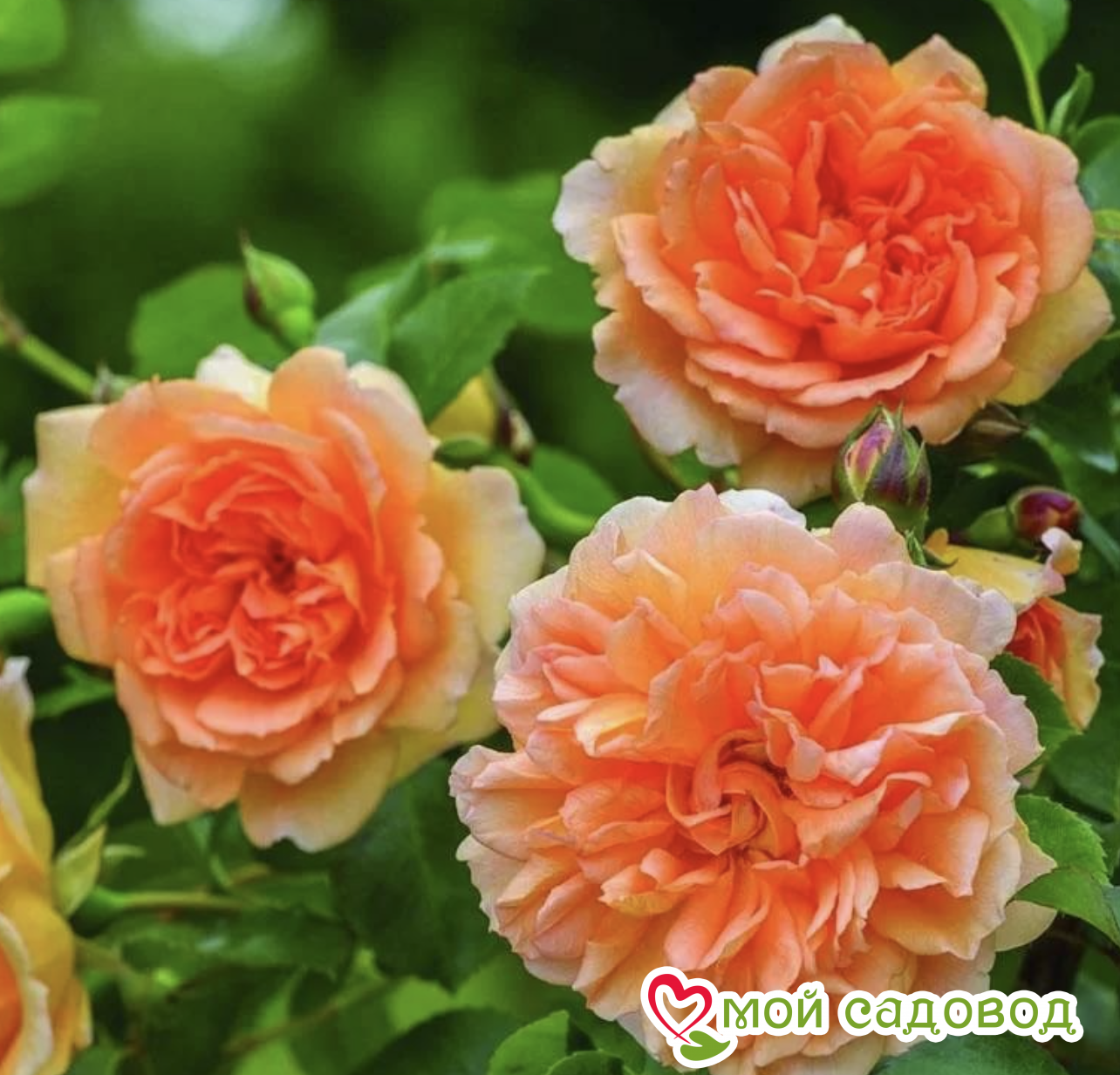 Английская кустовая роза Dame Judi Dench (Леди Джуди Денч ) селекции Дэвида Остина, новинка 2017 года, с цветками насыщенного абрикосово-оранжевого цвета, красиво бледнеющими по краям. Поразительные, с красными кончиками бутоны постепенно раскрываются, чтобы показать большие неплотно заполненные цветочные розетки с приподнятыми лепестками и зеленой «пуговицей» в центре. Цветки густомахровые, диаметром 8 см, в форме рыхлой розетки, собраны в соцветия. Присутствует мягкий легкий чайный аромат. Цветы обильно и продолжительно ярко цветут, показывают хорошую устойчивость к атмосферным воздействиям, выдерживают дождливую погоду, во время которой лепестки аккуратно опускаются. Цветение с июня до поздней осени.