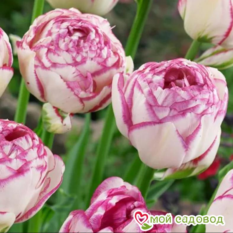 Читать далееЦветущие тюльпаны Дабл Тач похожи на махровые белые пионы с контрастной малиновой каймой по краю каждого лепестка — необычайно эффектный густомахровый сорт.